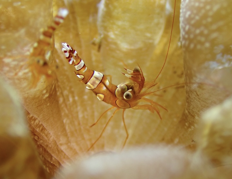 ウミウシ撮影の良い練習になるイソギンチャクモエビ