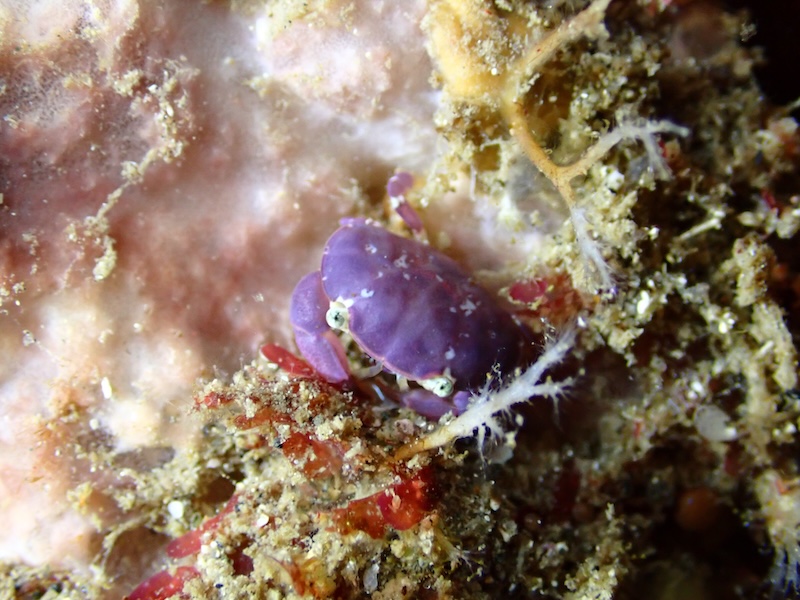 ビーチ右側では良く見れるスベスベマンジュウガニの紫色バージョン
